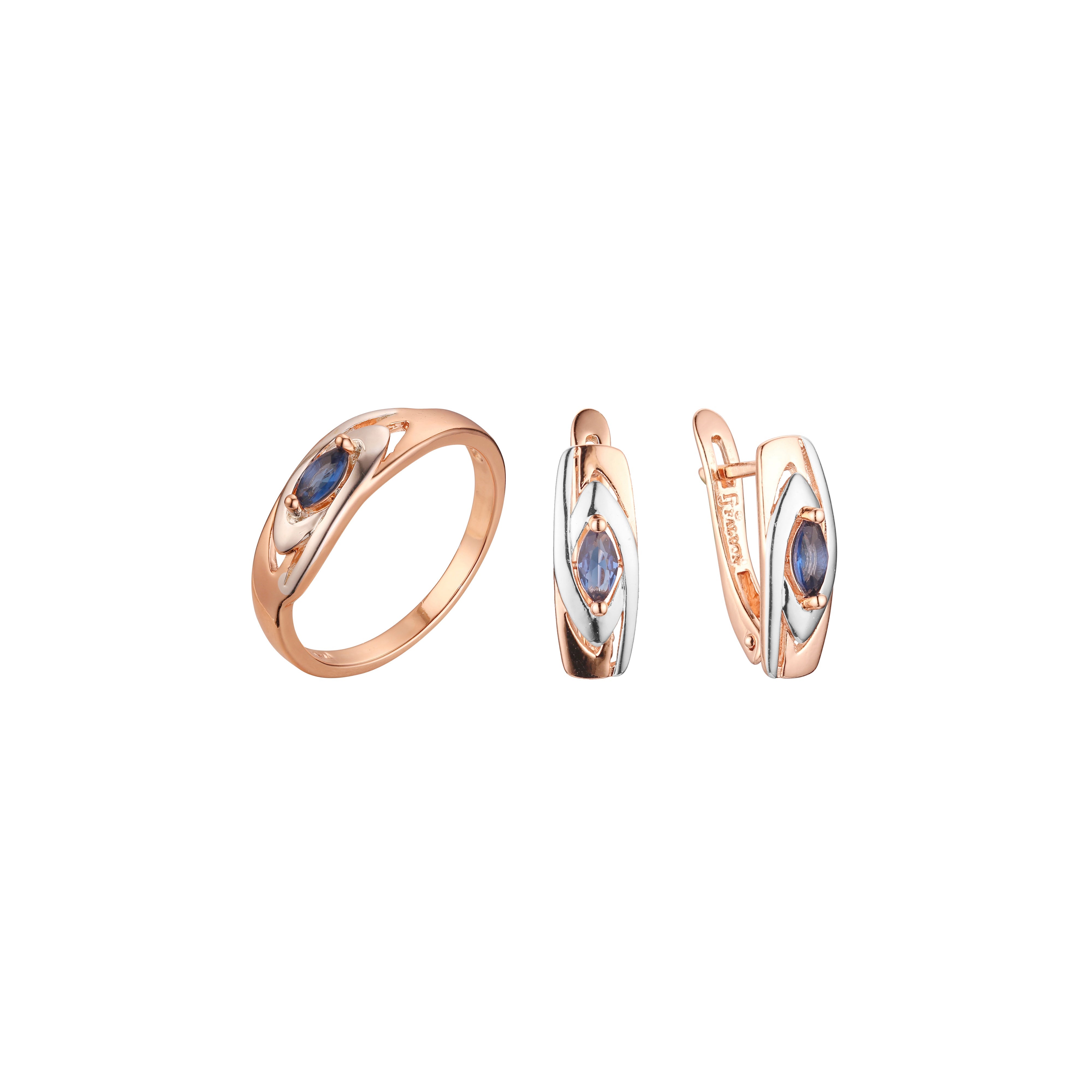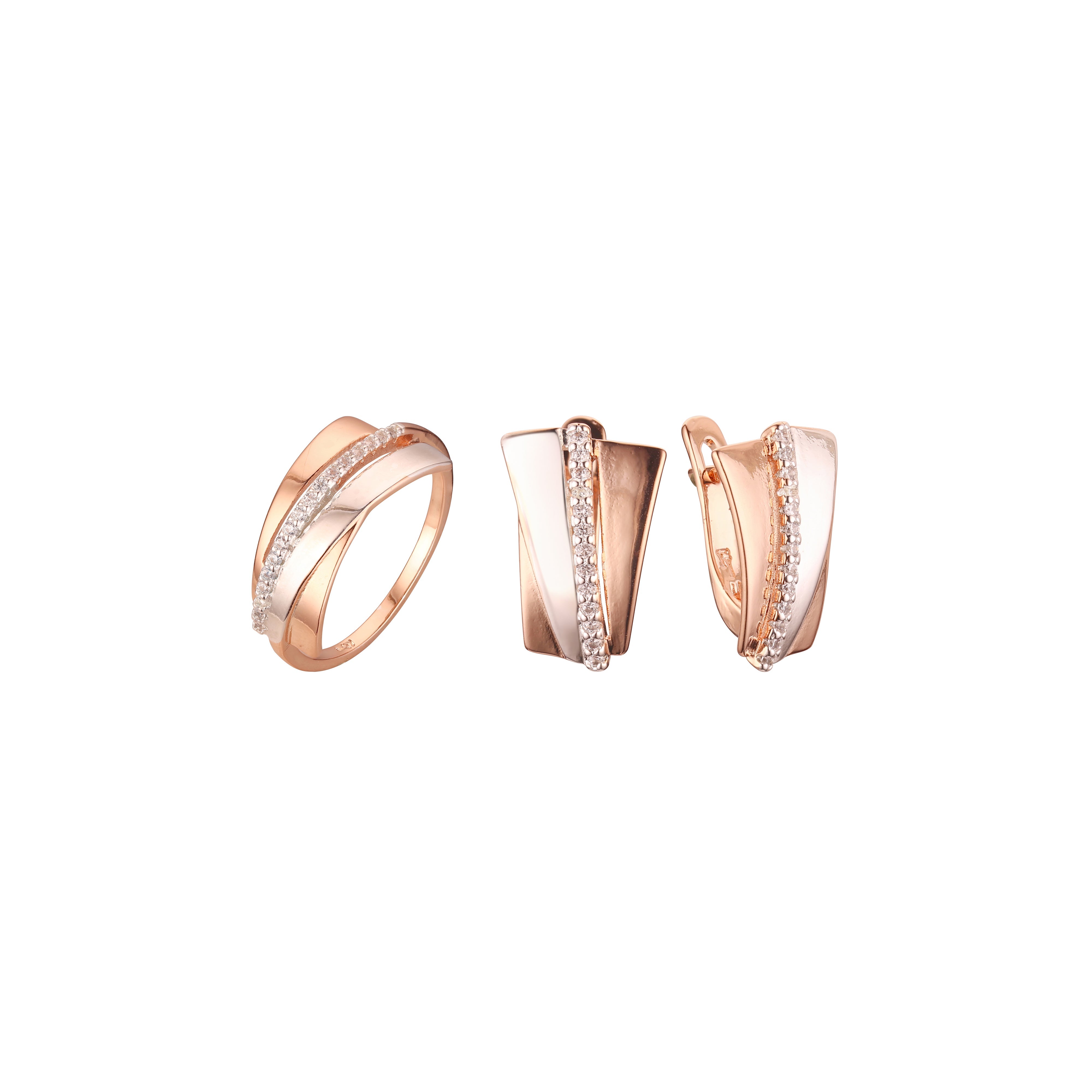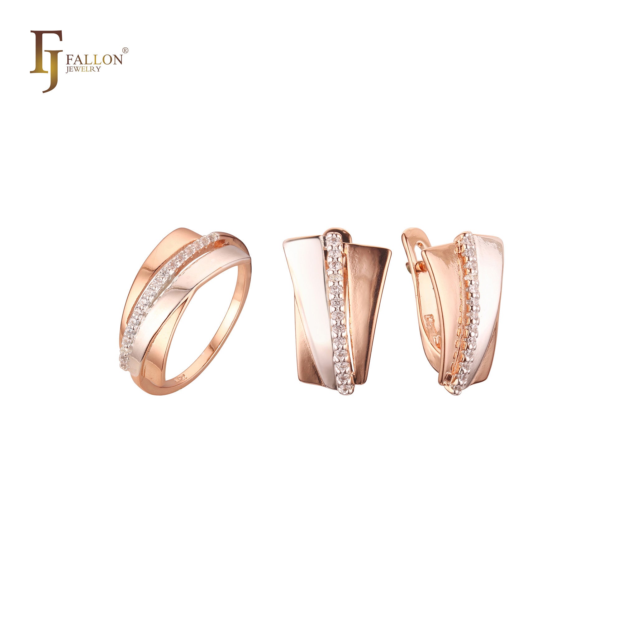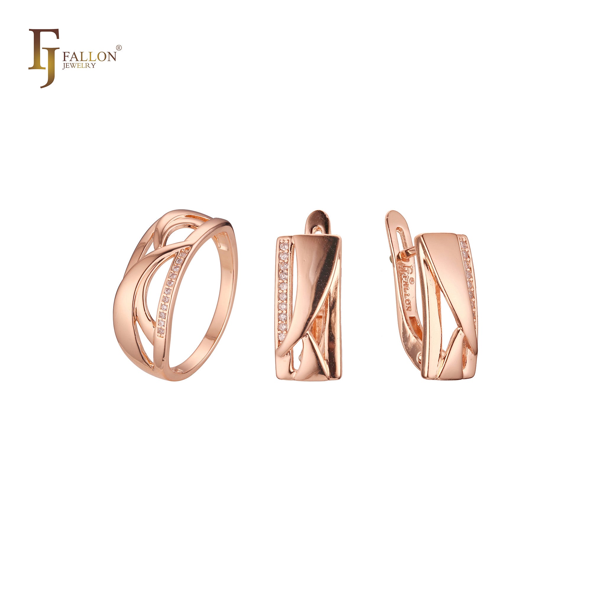 Double criss-cross cross over set with rings in Rose Gold, two tone plating colors