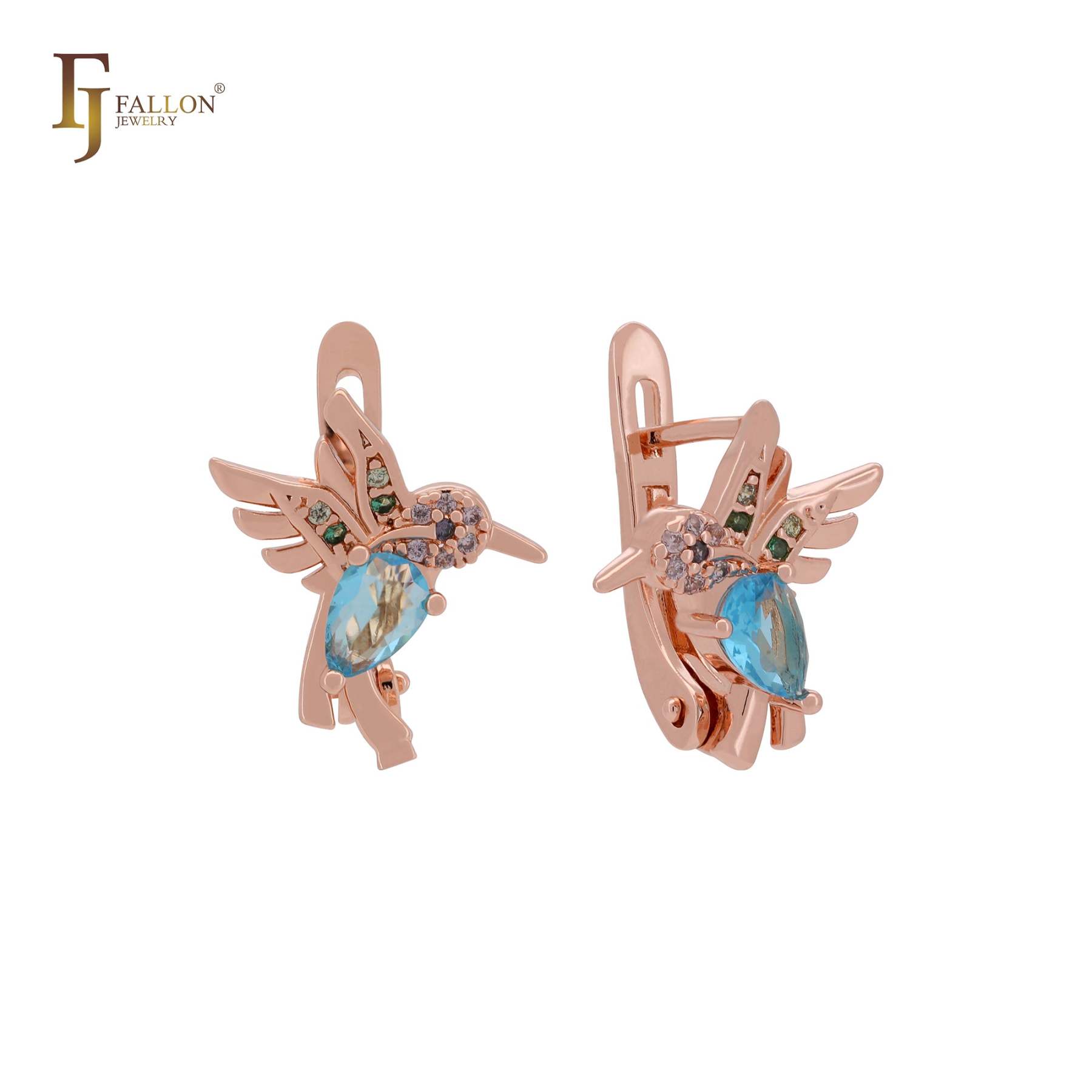 Hummingbird with lake blue CZ Rose Gold Child Earrings