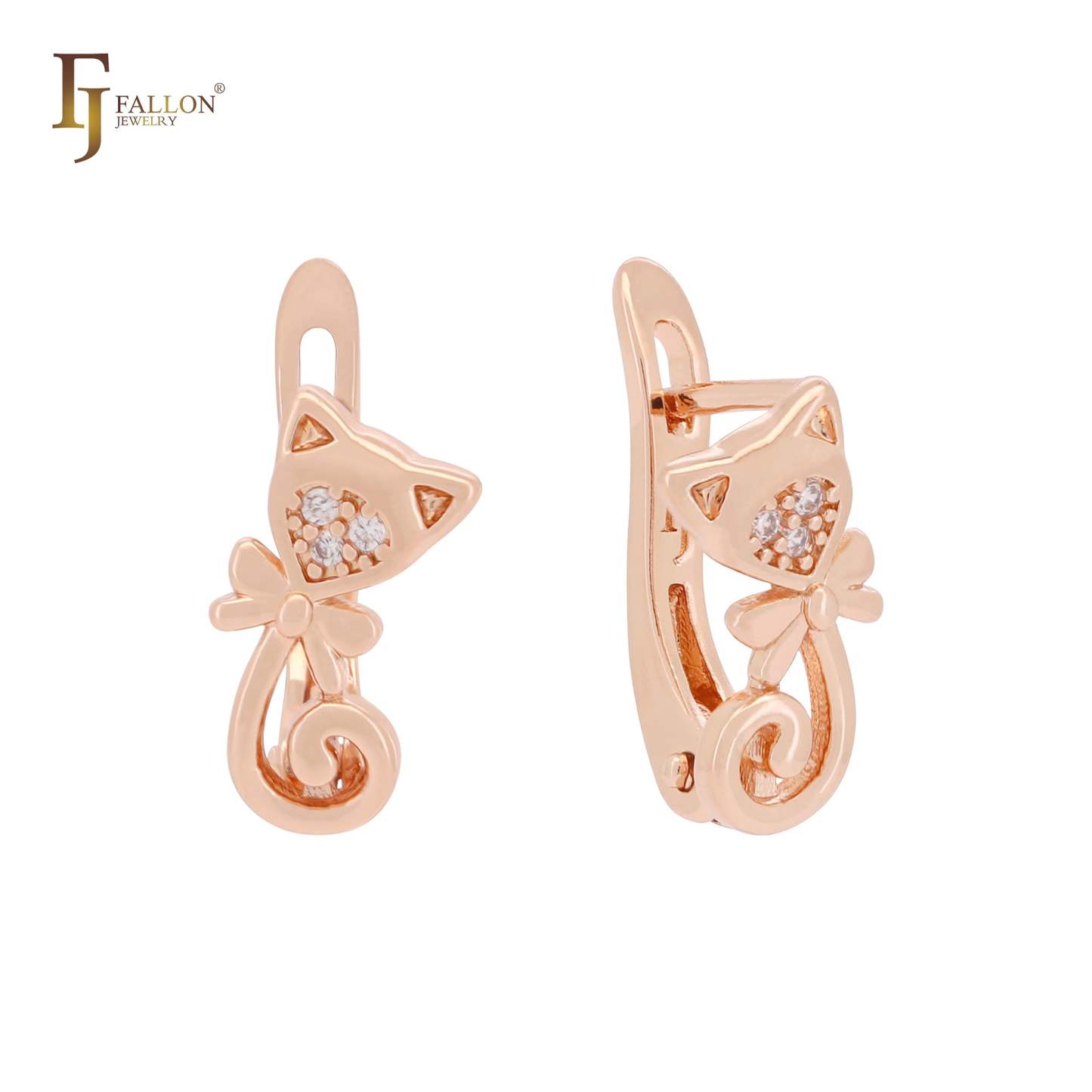 Little Kitty white CZs Rose Gold child earrings