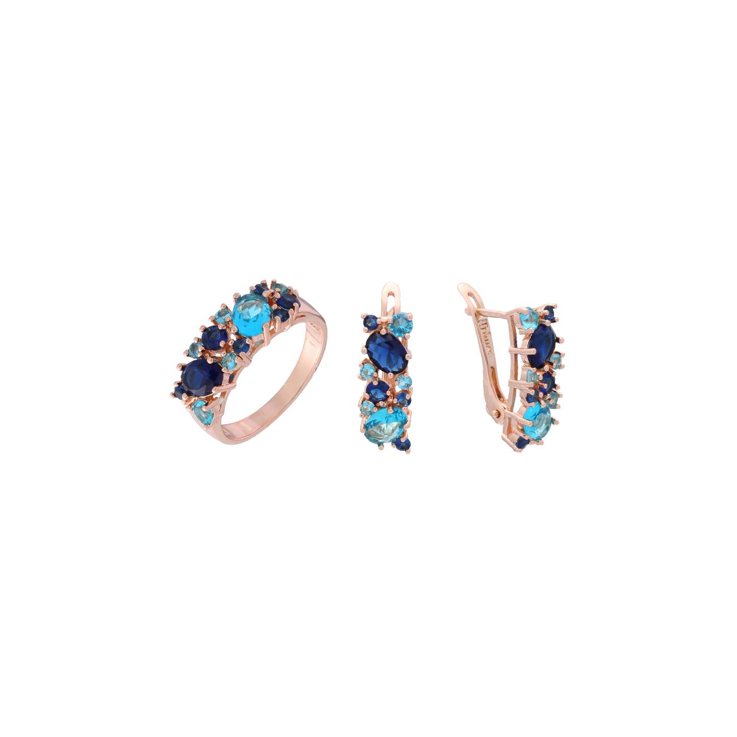 .Luxurious colorful cluster rings Rose Gold jewelry set