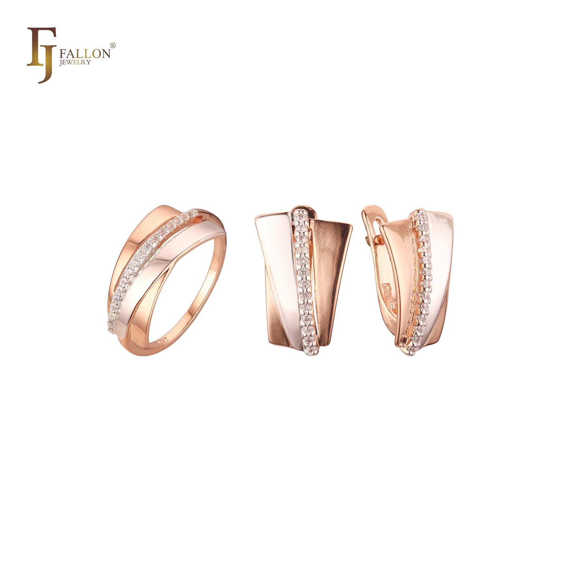 Rose Gold two tone set crossed with pavin stones